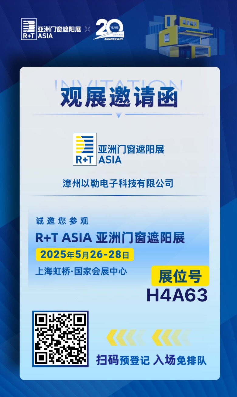 漳州以勒電子科技有限公司( YILE )將參加第20屆 亞洲門窗遮陽展(2025),誠摯期待您的蒞臨指導!