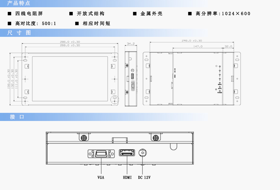 | 分 辨 率 | 1024RGB(寬)×600(高) | ||