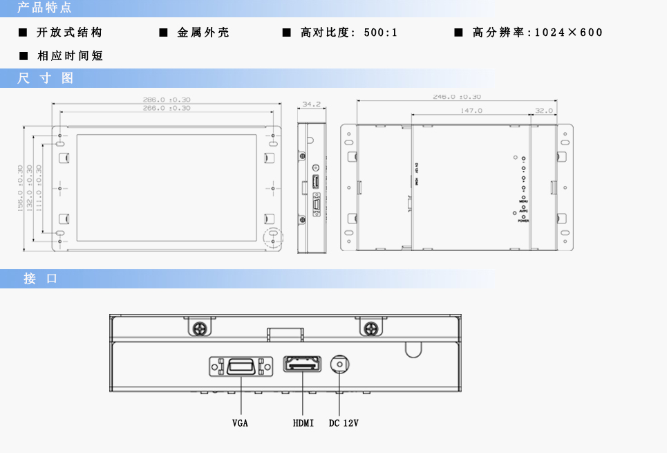 | 分 辨 率 | 1024RGB(寬)×600(高) | ||