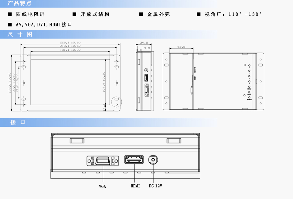| 輸入信號(hào) | RCA Video×2,RCA Audio×1,VGA×1,DVI×1,HDMI×1 | ||
